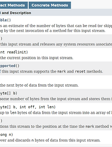 728x90 반응형 Java97 Java InputStream의 메서드 InputStream - 바이트 기반 입력 스트림의 최상위 클래스로 추상클래스입니다. 모든 바이트 기반 입력 스트림은 InputStream을 상속받아 만들어 집니다 java.io.InputStream에 있는 모든 메서드입니다. int available() - 현재 읽을수 있는 바이트수를 반환한다. void close() - 현재 열려있는 InputStream을 닫는다. void mark(int readlimit) - InputStream에서 현재의 위치를 표시해준다. boolean markSupported() - 해당 InputStream에서 mark()로 지정된 지점이 있는지에 대한 여부를 확인한다. abstract int read() - InputStream에서 한 바이트를 읽어서 int값으로 반환한.. 2017. 7. 20. Java IO패키지 IO 패키지란 ? 사용자로부터 입력을 받고 또는 파일 , 네트워크로부터 입력받아 파일로 출력, 모니터로 출력하거나 저장할수있다. 자바에서는 이러한 데이터를 스트림을 통해 입출력되므로 스트림을 잘 알아야 한다. 스트림에는 입력스트림 , 출력스트림 두가지가 있다. 이 두가지를 간단하게 설명하자면 다음과 같다 입력 스트림 (InputStream) - 프로그램을 기준으로 데이터를 입력받을때. 출력 스트림 (outputStream) - 프로그램을 기준으로 데이터를 내보낼 때. 프로그램상 네트워크상의 다른 프로그램과 데이터 교환을 하려면 양쪽 모두 입,출력 스트림이 따로 필요하다. └이유는 스트림은 단방향이므로 하나의 스트림으로 입출력 모두 할수가 없다. java.io 패키지의 주요 클래스에 대해 알아보겠습니다 (.. 2017. 7. 20. Java Attach Source 설정하기. 이클립스를 하면서 System.out.println()이라던지 .. 다양한 메서드들이 어떻게 코딩되어있는지 궁금한 경우가 있다. 해당 메서드 위에서 F3을 누르거나 Ctrl + 왼쪽버튼으로 클릭했을때 코드가 나오지 않고 아래처럼 파일이 열리는것을 확인할 수 있습니다. 이러한 경우 어떻게 하면 소스를 볼수 있는지 알아보도록 하겠습니다. 지금부터 Attach Source를 통한 해결방법을 알아보겠습니다 위에 보이는 Attach Source를 클릭하면 다음과 같은 화면을 확인 할 수 있습니다. External location 클릭후 Path에 있는 Extenal file을 클릭합니다. 그리고 java jdk가 설치된 디렉터리 밑에있는 src.zip을 클릭해줍니다. 확인을 하고 F3을 누르거나 Ctrl + 왼쪽.. 2017. 7. 18. Java Thread를 활용한 경마 예제 Thread를 활용한 간단한 경마 게임입니다. 문제 : Thread를 통하 5개의 말을 생성한다음 start시켜서 각각의 말마다 rank를 적어준다. 1등 말의경우에는 JOptionPane.showMessageDialog를 통해 1등만 출력해준다 import javax.swing.JOptionPane; public class ThreadHorse { public static void main(String[] args) { /** 말 쓰레드 5개 생성*/ //Horse horse1 = new Horse("최윤진", new Rank()); //Horse horse2 = new Horse("김윤진", new Rank()); //Horse horse3 = new Horse("박윤진", new Rank()); /.. 2017. 7. 17. 이전 1 ··· 3 4 5 6 7 8 9 ··· 25 다음 728x90 반응형
